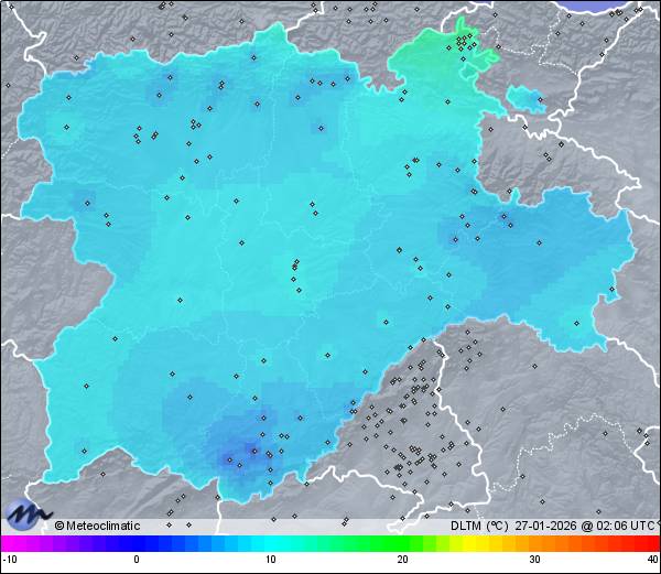 | Actualizado: 00:19 UTC | 9,6°C 85% | 9,8 °C / 85% | | 9,4°C / 85% | | 1.005 hPa |