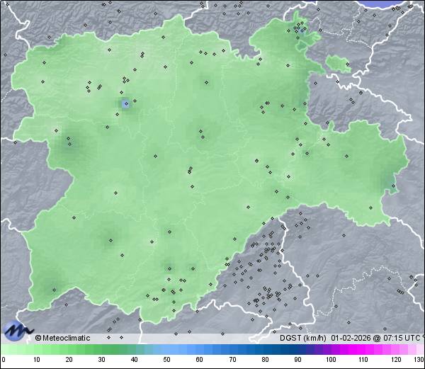 | Actualizado: 05:11 UTC | 5,7°C 92% | 6,2 °C / 94% | | 4,9°C / 89% | | 3 km/h ESE | | 15 km/h | | 1.017 hPa |