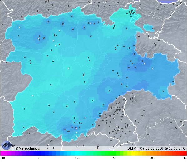 | Actualizado: 01:00 UTC | 7,2°C 93% | 7,8 °C / 95% | | 7,1°C / 92% | | 21 km/h ESE | | 52 km/h | | 1.003 hPa | | 0,2 mm |