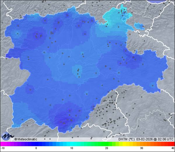 | Actualizado: 00:28 UTC | 2,6°C 83% | 2,6 °C / 91% | | 1,6°C / 83% | | 3 km/h NNW | | 9 km/h | | 1.003 hPa |
