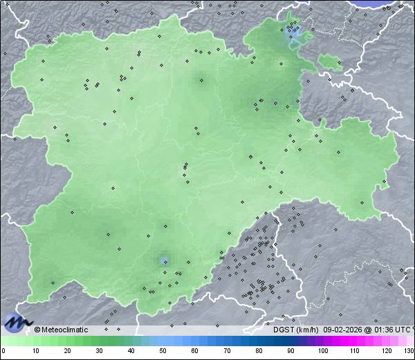 | Actualizado: 00:29 UTC | 9,7°C 84% | 9,8 °C / 87% | | 8,9°C / 81% | | 1 km/h W | | 9 km/h | | 1.006 hPa |