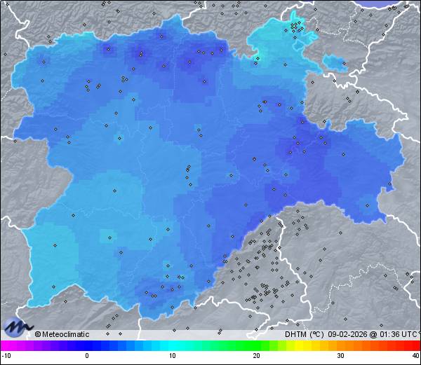 | Actualizado: 00:29 UTC | 9,7°C 84% | 9,8 °C / 87% | | 8,9°C / 81% | | 1 km/h W | | 9 km/h | | 1.006 hPa |