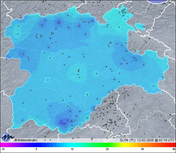 | Actualizado: 00:49 UTC | 8,6°C 74% | 9,9 °C / 74% | | 8,6°C / 70% | | 1.012 hPa |