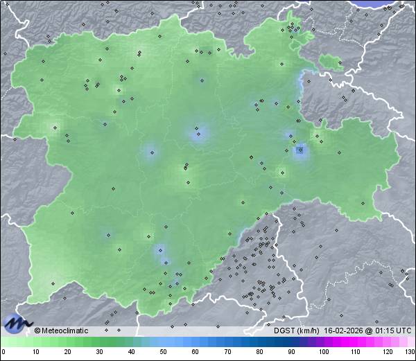 | Actualizado:15-02-2026 23:58 UTC | 7,7°C 93% | 9,5 °C / 97% | | 1,8°C / 83% | | 18 km/h W | | 35 km/h | | 1.027 hPa |