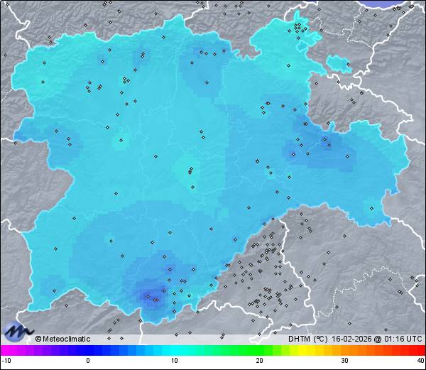 | Actualizado:15-02-2026 23:58 UTC | 6,8°C 93% | 9,7 °C / 99% | | -0,3°C / 82% | | Calma | | 24 km/h | | 1.033 hPa |