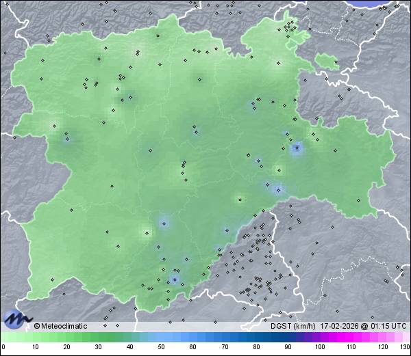 | Actualizado: 00:03 UTC | 9,7°C 94% | 10,0 °C / 94% | | 9,7°C / 93% | | 2 km/h N | | 14 km/h | | 1.023 hPa |
