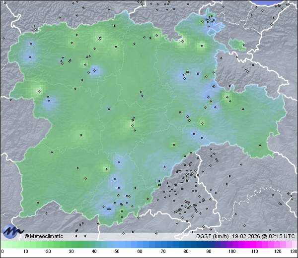 | Actualizado: 00:43 UTC | 8,7°C 57% | 8,8 °C / 67% | | 7,2°C / 57% | | 4 km/h ESE | | 50 km/h | | 1.016 hPa | | 0,1 mm |