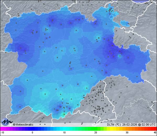 | Actualizado: 00:32 UTC | 2,5°C 83% | 4,1 °C / 84% | | 2,2°C / 75% | | Calma | | 3 km/h | | 1.026 hPa |