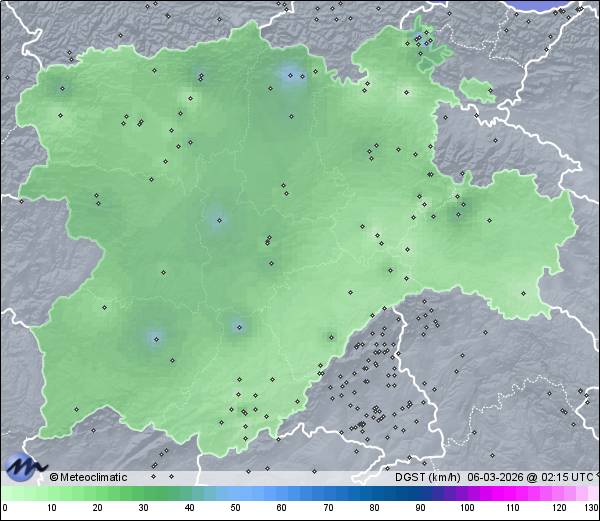| Actualizado: 00:17 UTC | 6,7°C 91% | 6,9 °C / 91% | | 6,7°C / 90% | | 3 km/h ENE | | 23 km/h | | 1.014 hPa | | 0,4 mm |