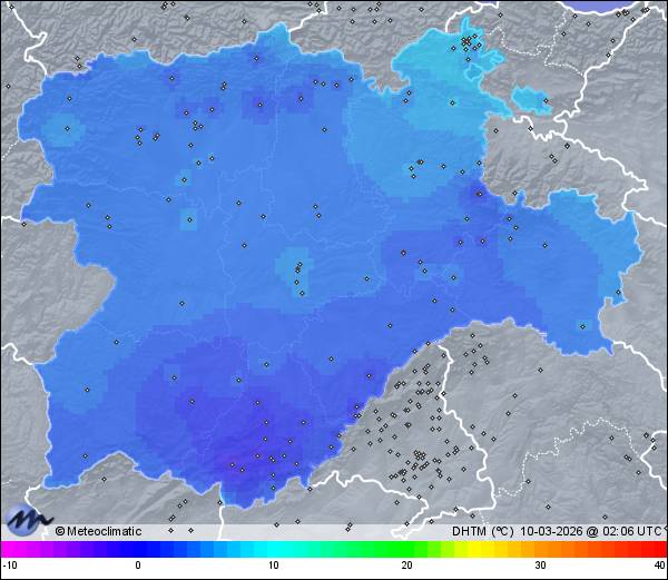 | Actualizado: 00:30 UTC | 8,4°C 93% | 8,6 °C / 93% |  | | 8,4°C / 91% | | Calma | | 3 km/h | | 1.021 hPa |