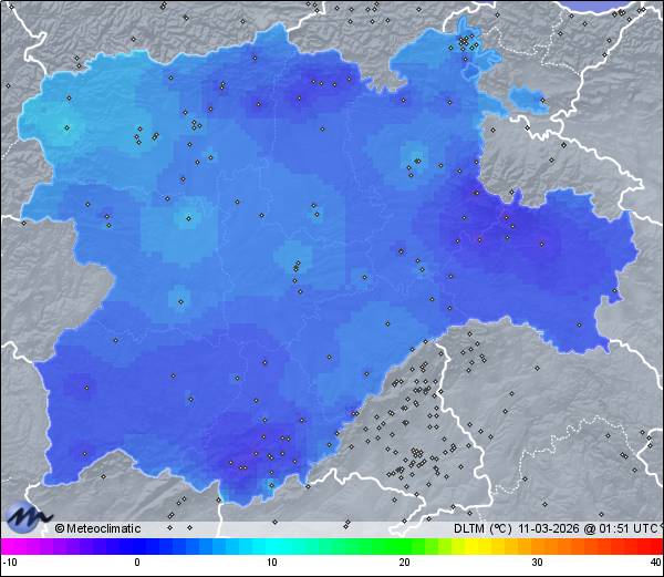 | Actualizado: 00:13 UTC | 8,6°C 88% | 8,7 °C / 88% | | 8,5°C / 88% | | 1.023 hPa |