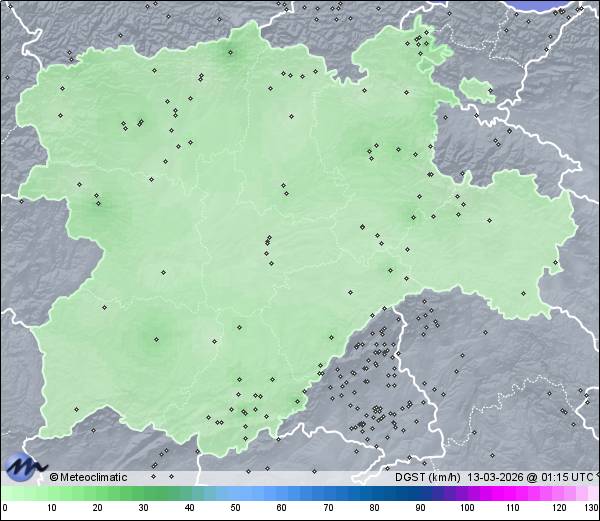| Actualizado:12-03-2026 23:59 UTC | 6,8°C 78% | 14,8 °C / 99% | | -0,6°C / 45% | | 6 km/h WNW | | 40 km/h | | 1.025 hPa |