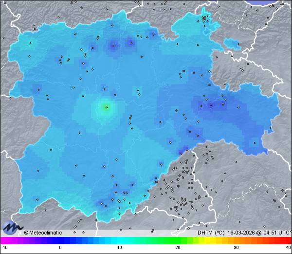 | Actualizado: 01:27 UTC | 4,6°C 82% | 15,9 °C / 89% | | 3,6°C / 44% | | 4 km/h E | | 50 km/h | | 1.024 hPa |