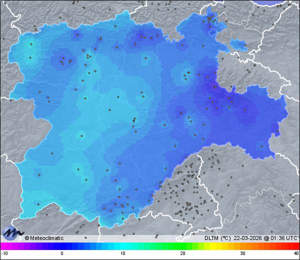 | Actualizado: 00:13 UTC | 4,6°C 71% | 5,8 °C / 73% | | 3,6°C / 64% | | 2 km/h NW | | 2 km/h | | 1.013 hPa |