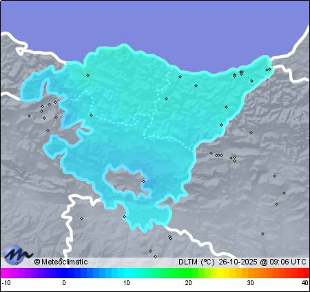 | Actualizado: 06:29 UTC | 10,0°C 89% | 10,6 °C / 93% |  | | 8,3°C / 87% | | 1.021 hPa |