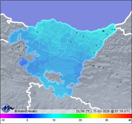 | Actualizado: 08:03 UTC | 9,8°C 93% | 10,8 °C / 94% |  | | 7,5°C / 87% | | Calma | | 6 km/h | | 1.024 hPa |