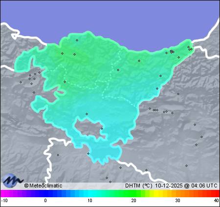 | Actualizado: 02:14 UTC | 10,4°C 79% | 10,8 °C / 80% | | 10,2°C / 76% | | 1 km/h NW | | 30 km/h | | 1.020 hPa |