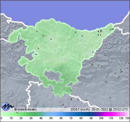 | 30-01-2022 | | | Máx. | Mín. | | | Temperatura | 11,9 | -0,5 | °C | | Humedad | 88 | 56 | % | | Viento | 26 | n/a | km/h | | Presión | 1.037 | 1.030 | hPa | | Precipitación | 0,0 | mm |