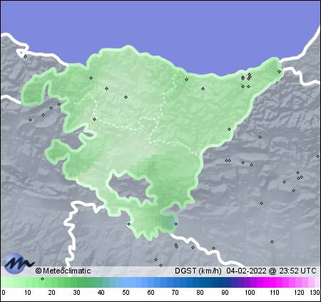 | 04-02-2022 | | | Máx. | Mín. | | | Temperatura | 12,5 | 6,2 | °C | | Humedad | 92 | 75 | % | | Viento | 35 | n/a | km/h | | Presión | 1.024 | 1.022 | hPa | | Precipitación | 2,8 | mm |