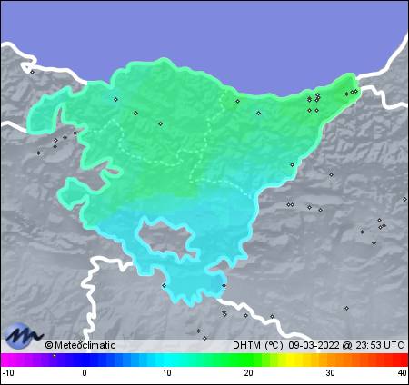 | 09-03-2022 | | | Máx. | Mín. | | | Temperatura | 17,5 | 5,3 | °C | | Humedad | 89 | 45 | % | | Viento | 44 | n/a | km/h | | Presión | 1.020 | 1.017 | hPa | | Precipitación | 0,0 | mm |