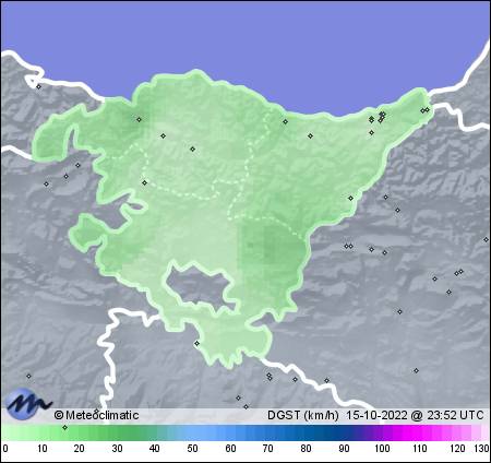 | 15-10-2022 | | | Máx. | Mín. | | | Temperatura | 27,1 | 12,9 | °C | | Humedad | 98 | 62 | % | | Viento | 13 | n/a | km/h | | Presión | 1.018 | 1.011 | hPa | | Precipitación | 0,0 | mm |