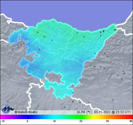 | 03-11-2022 | | | Máx. | Mín. | | | Temperatura | 19,3 | 7,9 | °C | | Humedad | 92 | 31 | % | | Viento | 45 | n/a | km/h | | Presión | 1.022 | 1.014 | hPa | | Precipitación | 0,9 | mm |