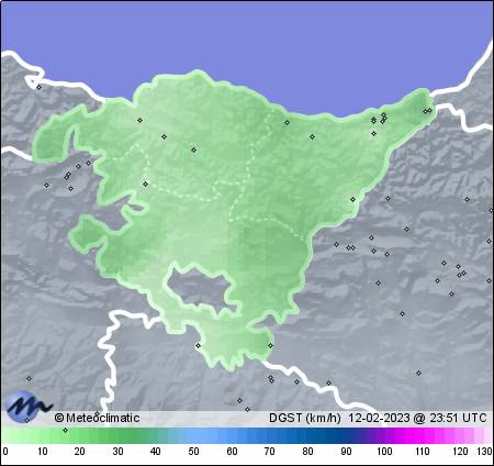 | 12-02-2023 | | | Máx. | Mín. | | | Temperatura | 18,5 | 8,6 | °C | | Humedad | 55 | 30 | % | | Viento | 35 | n/a | km/h | | Presión | 1.030 | 1.027 | hPa | | Precipitación | 0,0 | mm |
