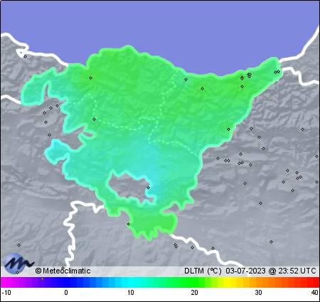 | 03-07-2023 | | | Máx. | Mín. | | | Temperatura | 23,5 | 16,2 | °C | | Humedad | 95 | 69 | % | | Viento | 13 | n/a | km/h | | Presión | 1.020 | 1.018 | hPa | | Precipitación | 0,0 | mm |