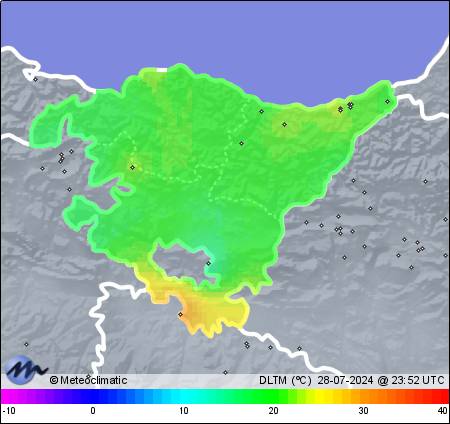 | 28-07-2024 | | | Máx. | Mín. | | | Temperatura | 29,4 | 19,9 | °C | | Humedad | 99 | 76 | % | | Viento | 37 | n/a | km/h | | Presión | 1.022 | 1.016 | hPa | | Precipitación | 3,0 | mm |