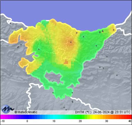 | 24-08-2024 | | | Máx. | Mín. | | | Temperatura | 27,1 | 17,7 | °C | | Humedad | 95 | 71 | % | | Viento | 39 | n/a | km/h | | Presión | 1.023 | 1.009 | hPa | | Precipitación | 17,6 | mm |