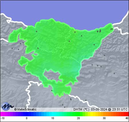 | 03-09-2024 | | | Máx. | Mín. | | | Temperatura | 19,2 | 16,9 | °C | | Humedad | 96 | 91 | % | | Viento | 29 | n/a | km/h | | Presión | 1.020 | 1.017 | hPa | | Precipitación | 20,8 | mm |