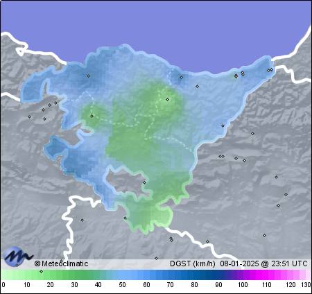| 08-01-2025 | | | Máx. | Mín. | | | Temperatura | 17,1 | 15,4 | °C | | Humedad | 68 | 54 | % | | Viento | 103 | n/a | km/h | | Presión | 1.012 | 1.006 | hPa | | Precipitación | 0,0 | mm |
