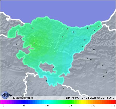 | 26-04-2025 | | | Máx. | Mín. | | | Temperatura | 13,0 | 11,4 | °C | | Humedad | 88 | 70 | % | | Viento | 37 | n/a | km/h | | Presión | 1.024 | 1.018 | hPa | | Precipitación | 25,8 | mm |