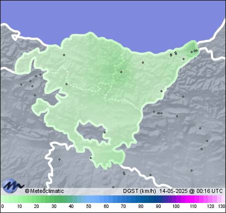 | 13-05-2025 | | | Máx. | Mín. | | | Temperatura | 18,9 | 12,0 | °C | | Humedad | 93 | 74 | % | | Viento | 36 | n/a | km/h | | Presión | 1.016 | 1.014 | hPa | | Precipitación | 1,6 | mm |
