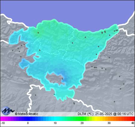 | 20-05-2025 | | | Máx. | Mín. | | | Temperatura | 18,9 | 13,2 | °C | | Humedad | 86 | 75 | % | | Viento | 39 | n/a | km/h | | Presión | 1.025 | 1.020 | hPa | | Precipitación | 0,0 | mm |