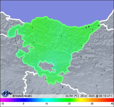 | 27-07-2025 | | | Máx. | Mín. | | | Temperatura | 21,8 | 17,1 | °C | | Humedad | 88 | 68 | % | | Viento | 10 | n/a | km/h | | Presión | 1.023 | 1.020 | hPa | | Precipitación | 1,4 | mm |