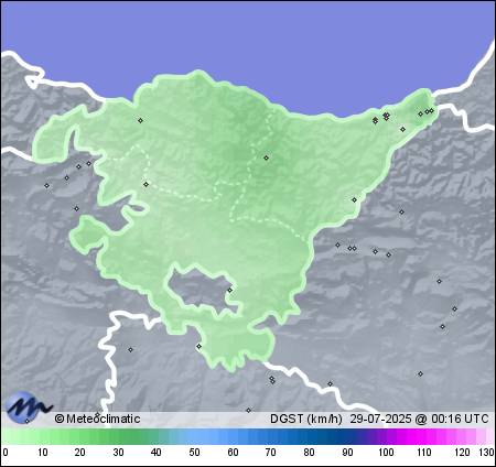 | 28-07-2025 | | | Máx. | Mín. | | | Temperatura | 22,3 | 17,2 | °C | | Humedad | 94 | 69 | % | | Viento | 35 | n/a | km/h | | Presión | 1.025 | 1.021 | hPa | | Precipitación | 2,6 | mm |