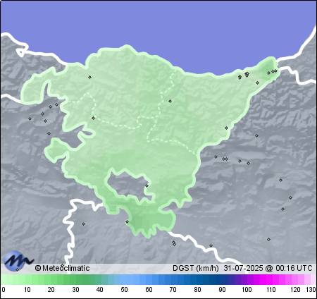 | 30-07-2025 | | | Máx. | Mín. | | | Temperatura | 22,0 | 15,5 | °C | | Humedad | 99 | 72 | % | | Viento | 25 | n/a | km/h | | Presión | 1.026 | 1.025 | hPa | | Precipitación | 0,9 | mm |