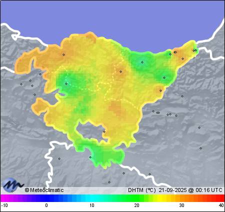| 20-09-2025 | | | Máx. | Mín. | | | Temperatura | 29,0 | 16,0 | °C | | Humedad | 94 | 46 | % | | Viento | 39 | n/a | km/h | | Presión | 1.023 | 1.018 | hPa | | Precipitación | 14,6 | mm |
