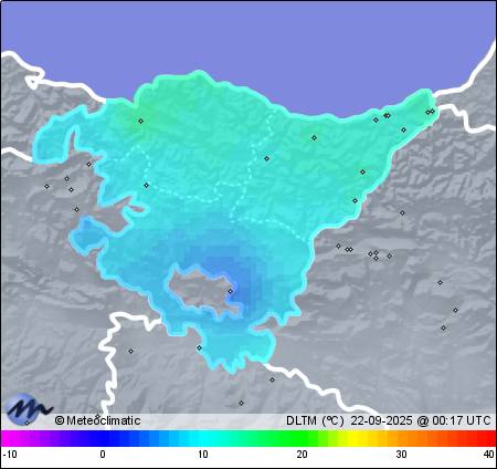 | 21-09-2025 | | | Máx. | Mín. | | | Temperatura | 18,7 | 12,6 | °C | | Humedad | 97 | 76 | % | | Viento | 34 | n/a | km/h | | Presión | 1.020 | 1.017 | hPa | | Precipitación | 8,6 | mm |