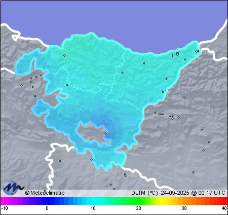 | 23-09-2025 | | | Máx. | Mín. | | | Temperatura | 17,5 | 10,9 | °C | | Humedad | 98 | 57 | % | | Viento | 24 | n/a | km/h | | Presión | 1.025 | 1.021 | hPa | | Precipitación | 6,2 | mm |