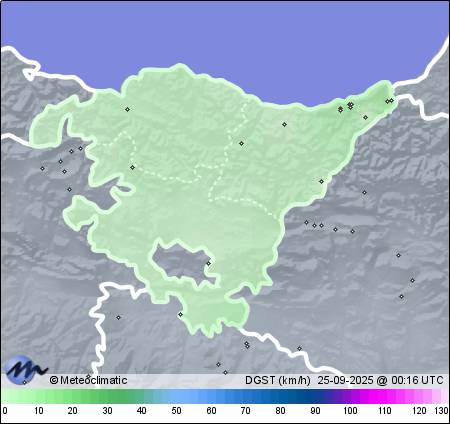 | 24-09-2025 | | | Máx. | Mín. | | | Temperatura | 16,4 | 10,2 | °C | | Humedad | 95 | 72 | % | | Viento | 19 | n/a | km/h | | Presión | 1.025 | 1.024 | hPa | | Precipitación | 2,0 | mm |