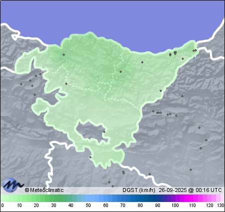 | 25-09-2025 | | | Máx. | Mín. | | | Temperatura | 16,3 | 12,0 | °C | | Humedad | 98 | 88 | % | | Viento | 11 | n/a | km/h | | Presión | 1.026 | 1.023 | hPa | | Precipitación | 1,3 | mm |