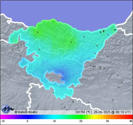 | 25-09-2025 | | | Máx. | Mín. | | | Temperatura | 16,3 | 12,0 | °C | | Humedad | 98 | 88 | % | | Viento | 11 | n/a | km/h | | Presión | 1.026 | 1.023 | hPa | | Precipitación | 1,3 | mm |