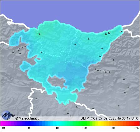 | 26-09-2025 | | | Máx. | Mín. | | | Temperatura | 19,6 | 11,3 | °C | | Humedad | 90 | 61 | % | | Viento | 16 | n/a | km/h | | Presión | 1.022 | 1.019 | hPa | | Precipitación | 0,0 | mm |