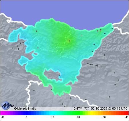 01-10-2025 | | Máx. | Mín. | | Temperatura | 21,4 | 9,0 | °C | Humedad | 99 | 55 | % | Viento | 22 | n/a | km/h | Presión | 1.028 | 1.025 | hPa | Precipitación | 0,0 | mm |
