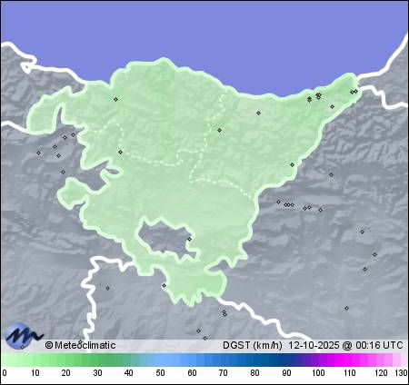 11-10-2025 | | Máx. | Mín. | | Temperatura | 19,1 | 10,9 | °C | Humedad | 82 | 74 | % | Viento | 19 | n/a | km/h | Presión | 1.026 | 1.022 | hPa | Precipitación | 0,0 | mm |