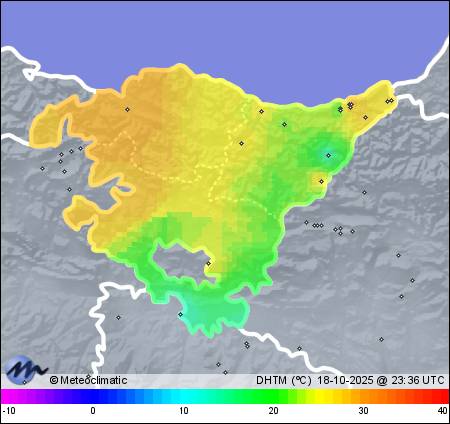 Actualizado: 16:03 UTC | 18,3°C 73% | 18,8 °C / 92% | 9,4°C / 68% | | 2 km/h NE | 15 km/h | 1.017 hPa |