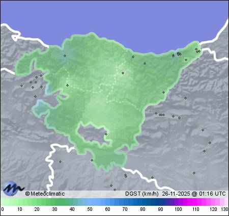 | Actualizado:25-11-2025 23:45 UTC | 8,1°C 75% | 10,1 °C / 87% |  | | 6,7°C / 75% | | 13 km/h NE | | 68 km/h | | 1.028 hPa |