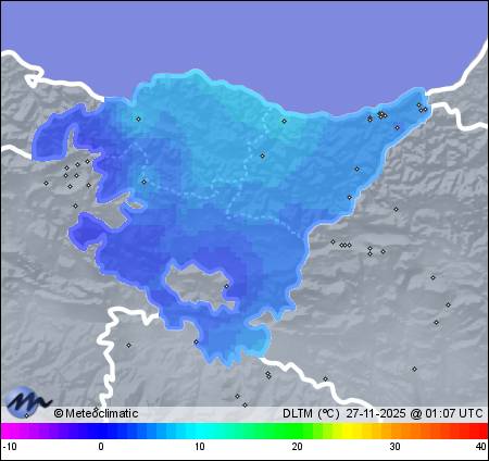 | Actualizado: 00:13 UTC | 5,0°C 92% | 5,1 °C / 92% | | 5,0°C / 91% | | Calma | | 4 km/h | | 1.027 hPa |
